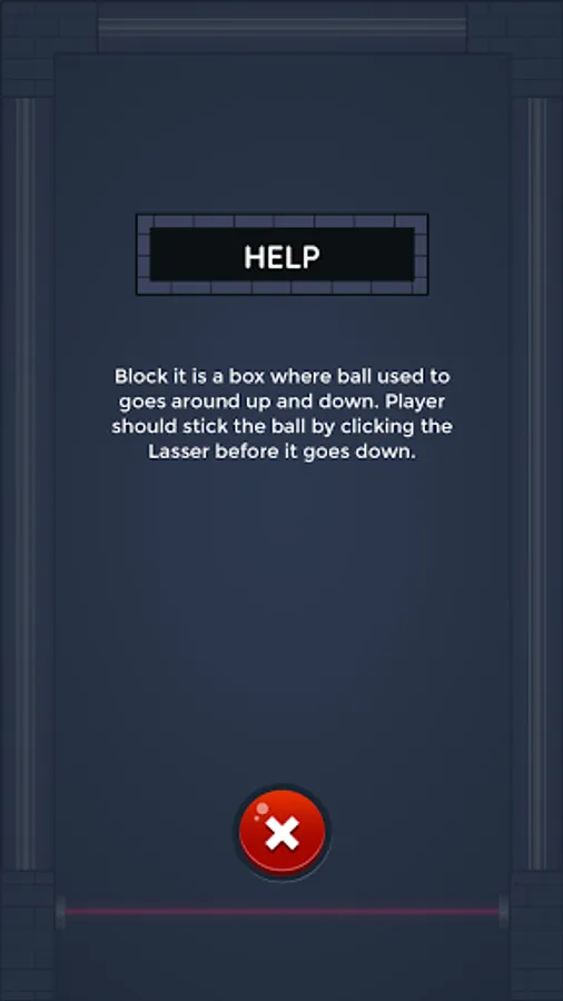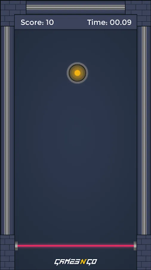 As per the physical dynamics --- the ball goes down towards the sinking level as per gravity --- The user has to save the ball from sinking --- And to Save the ball, once the user touches the screen right before the ball sinking at the right time, a laser tag appears on the screen --- and this laser tag prevents the ball from sinking and the ball bounces back into the zone to bash the next wall