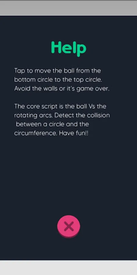 Tap to move the ball from the bottom circle to the top circle. Avoid the walls or it is game over.