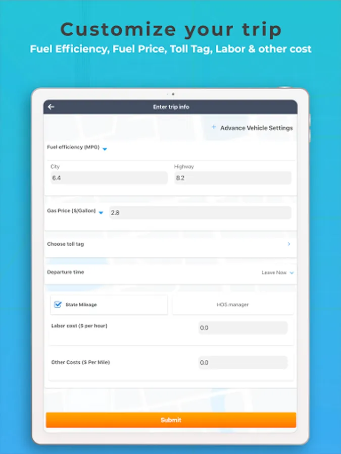 TollGuru Toll & Fuel (gas, petrol, diesel, electricity) trip calculator computes toll & cost for car, carpool, EVs, taxi, rideshare, truck, trailer, bus, RV and motorcycle. Travel on the cheapest, the fastest, and compromise routes post time and cost tradeoff.