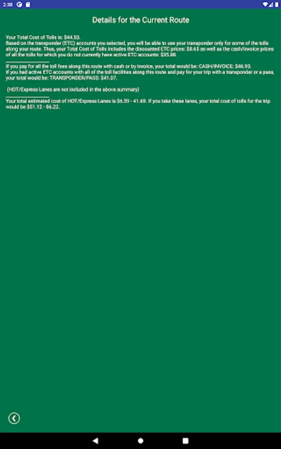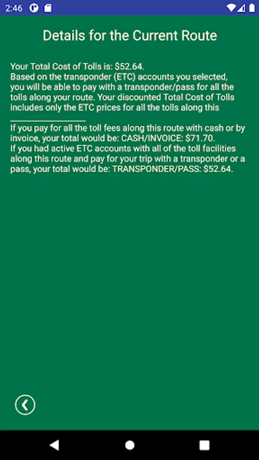 Ever wish Google Maps, WAZE or MapQuest displayed how much tolls cost? Now you can quickly find out using the Tollsmart Toll Calculator app. Tollsmart is the only Android app that calculates toll costs across all tunnels, bridges and toll roads* in the US & Canada, and includes discounts from all ETC (transponder) agencies such as E-ZPass, SunPass, TxTag and FasTrak.