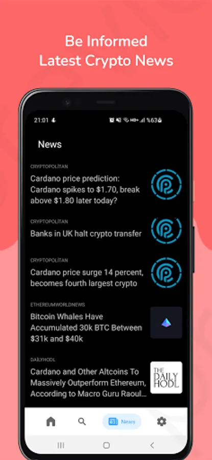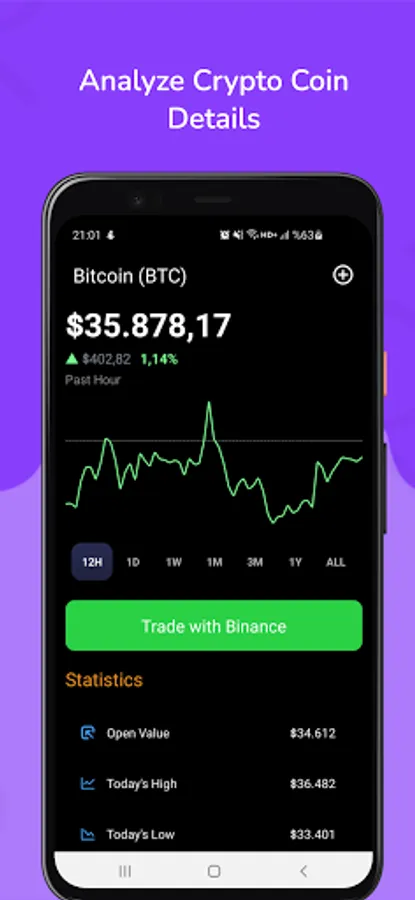 Track Bitcoin price, Ethereum price, Doge, and over 4,000 altcoin prices. Never miss the opportunity of buying or selling coins.