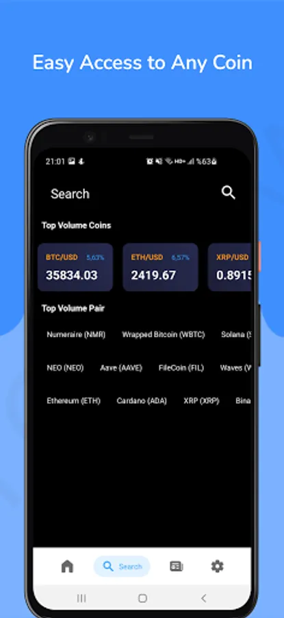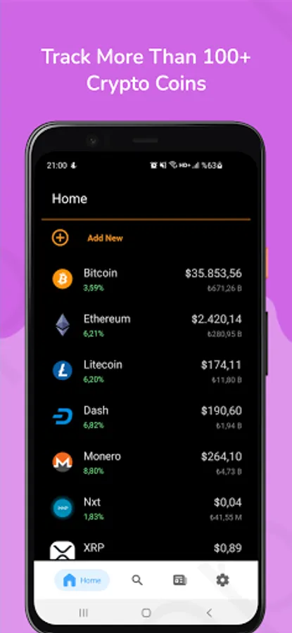 Track Bitcoin, Ethereum, Ripple, Doge, and over 4,000 altcoins prices from 100+ exchanges. Use your local currency in your country and sync your favorite exchanges. Learn crypto prices, values & changes in real-time, xTrack brings all the crypto-related news from over 10 sources to you. Also, look at bitcoin market value and bitcoin value today in details of it. On every coin page, you can recent news from the world about it. You can also access the most popular coin markets in one click and buy or sell crypto coins instantly. Choose any coin and see its statistics on detail page.