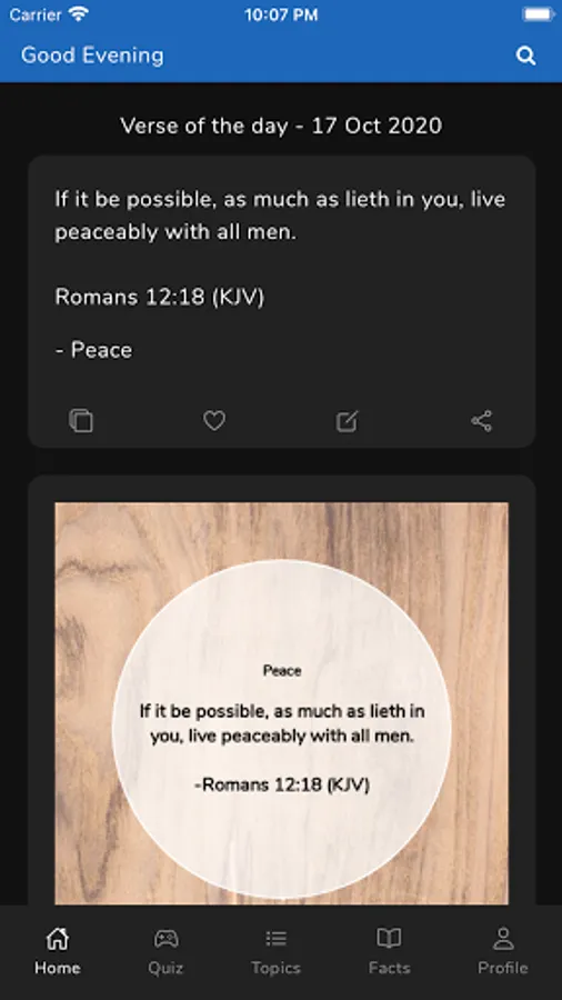 β Bookmark your favourite bible verse on a particular topic by pressing the star icon.