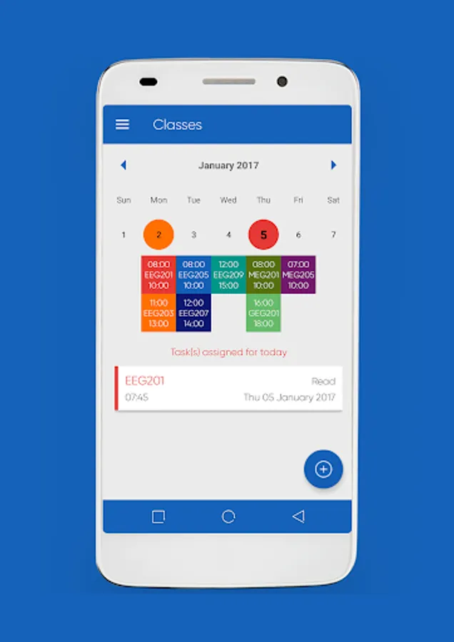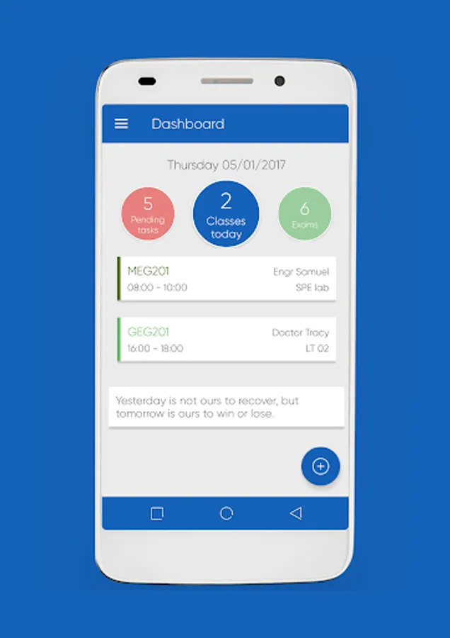 Manage your classes and never get to a class late. This is one of the starting activities to improving grades and increasing focus. This is achievable with our inbuilt notification system, which reminds you 10 minutes before a class and when it is time for the class. Easily assign tasks to your courses [such as submitting an assignment at a certain day and time, reading your book at a particular hour], and our notification system will not forget to notify you when the class is due.