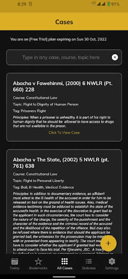 Precious Caseapp is a Dictionary for Legal cases. The app provides over 6000 legal cases with their facts and principles on various courses including; Constitutional Law, Law of Torts, Criminal Law, Land Law, Evidence, Law of Contract, Legal System, etc.