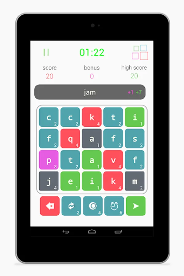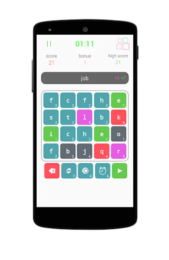 -To gain additional time (five seconds) plus (one bonus point), find a word that scores more than nine points.