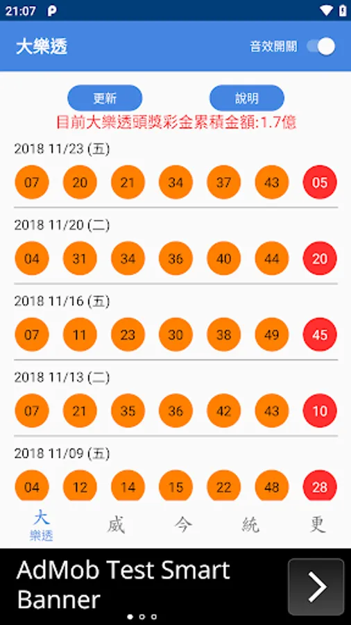 6. Prize numbers for the past 20 issues (39 Lottery)
