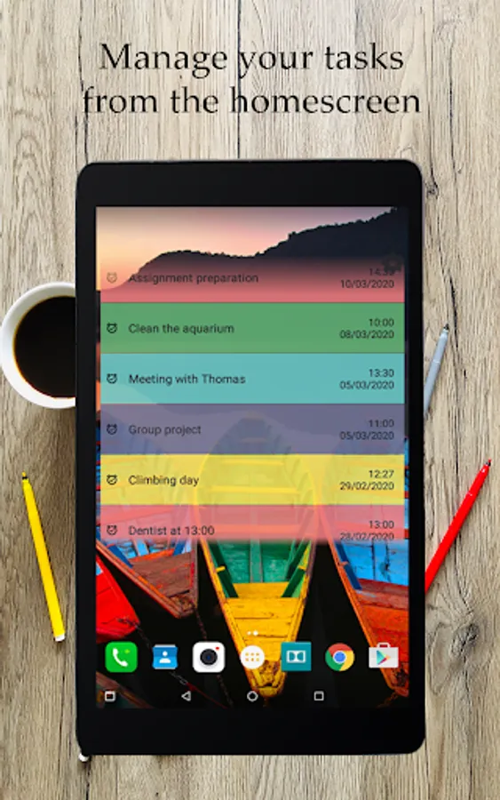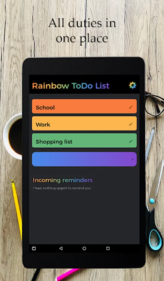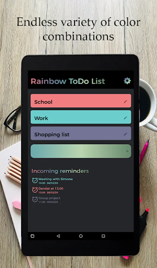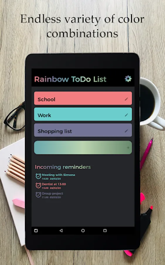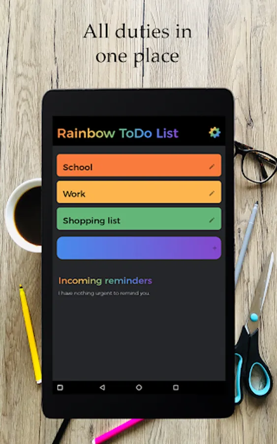 Rainbow To-Do List is a colorfully simple To-Do List application for better organization of all your tasks, reminders and notes.