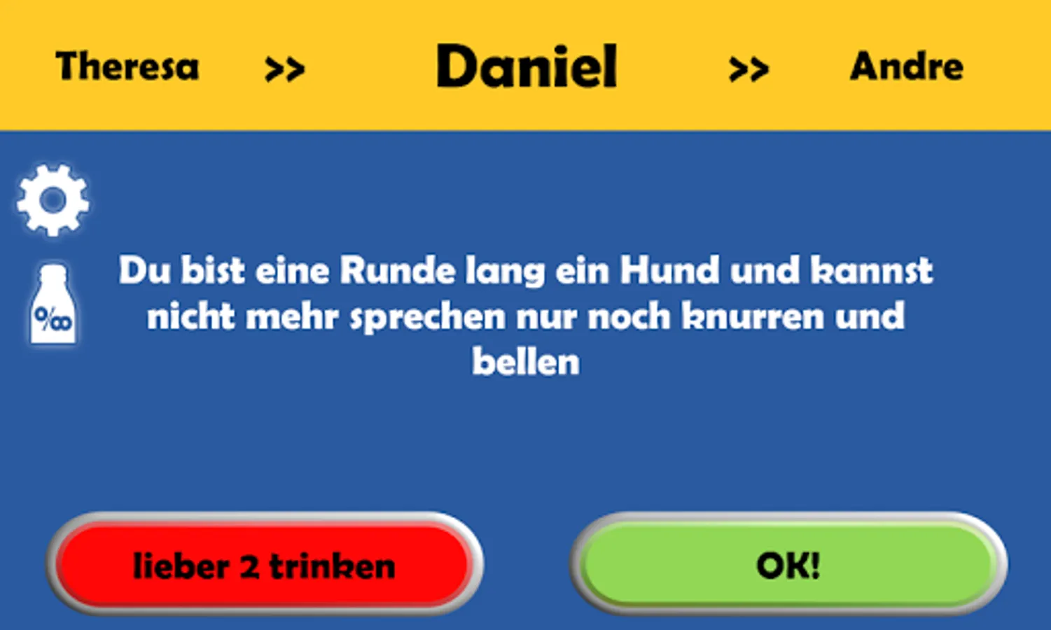 Entweder ihr bringt alle beim Erfüllen der peinlichen Aufgaben zum Lachen oder ihr trinkt einfach!