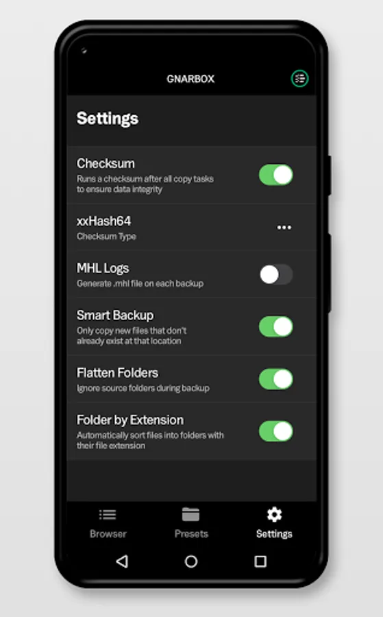• Backups with xxHash64 or MD5 Checksum Verification: Secure your files to and from memory cards, storage drives, or your GNARBOX internal SSD with an easy-to-use interface. Checksum verifications that give you the assurance of successful file transfers.