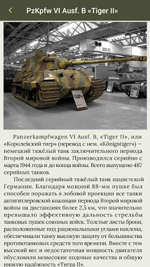 Do you consider yourself knowledgeable about everything related to tanks and armored vehicles? The application has three built-in tests according to the difficulty level. Test your knowledge and see how well you do!