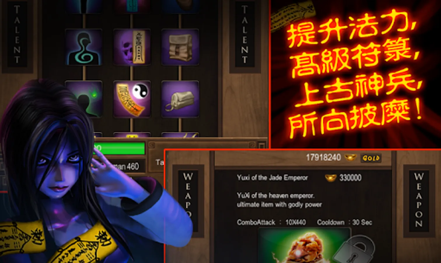- Traditional Taoism weapons like talisman, soul bell, bagua mirror, ancient sword and many more.