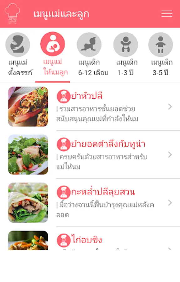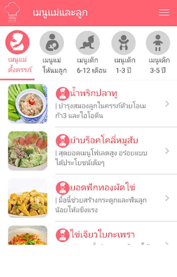 เมนูอาหารเด็ก & แม่ตั้งครรภ์ Screenshots