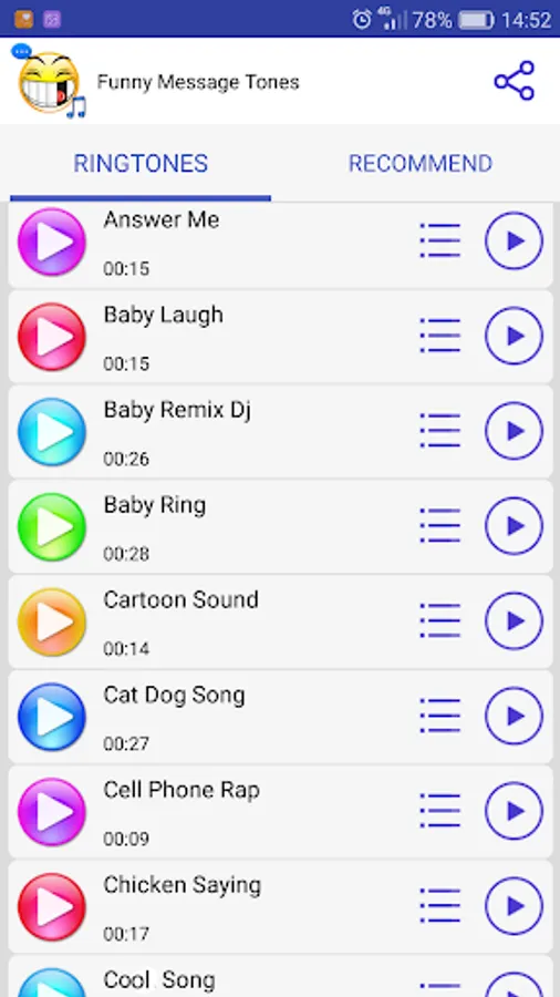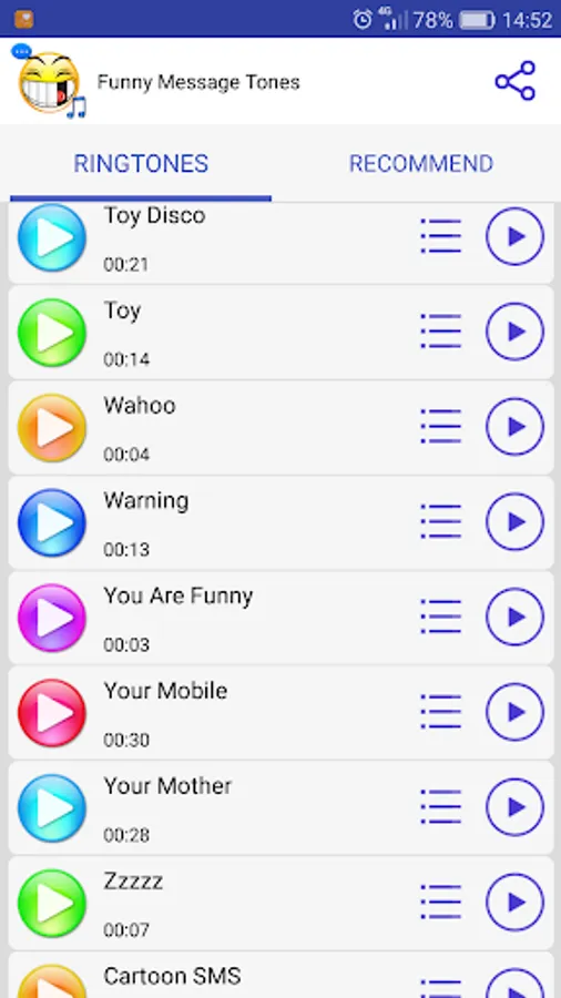 4, Free to set any Funny Message Tones as default ringtones, alarm clock ringtones or SMS notifications tones!