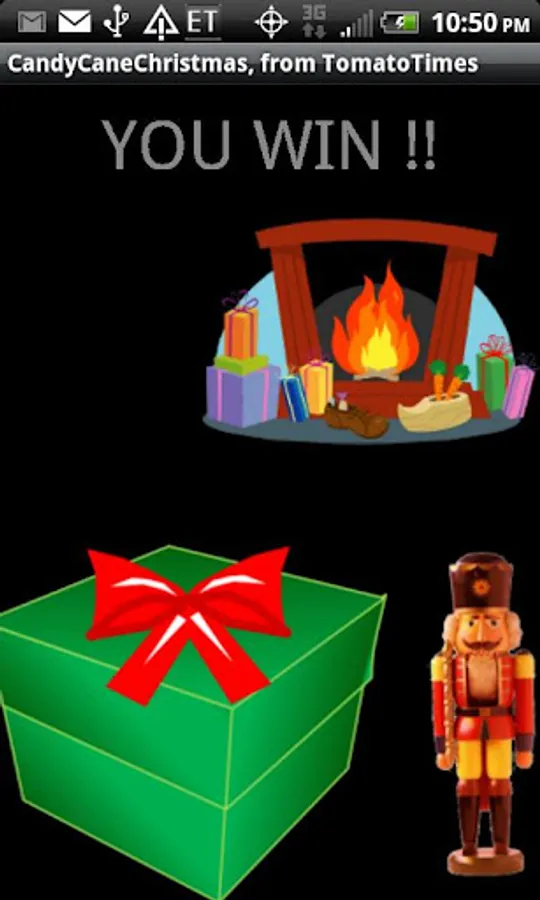 When all 10 candy canes are used up, the gift box will magically close. If all 10 candy canes are inside the present, the user wins and a Christmas surprise will appear.