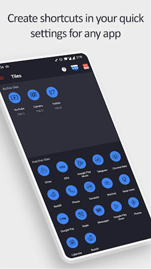 This app uses the real app icon for the quick settings tile, making it easier for you to identify the apps & shortcuts you want to open.