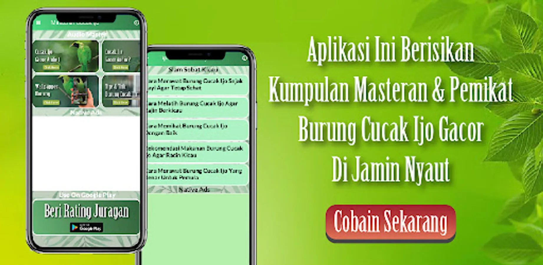 The Cucak Ijo Gacor Ngentrok Sound application is a mobile application specifically designed for Cucak Ijo bird lovers. This application provides various kinds of Cucak Ijo bird sounds that can be used to lure and improve the sound quality of your pet Cucak Ijo birds.