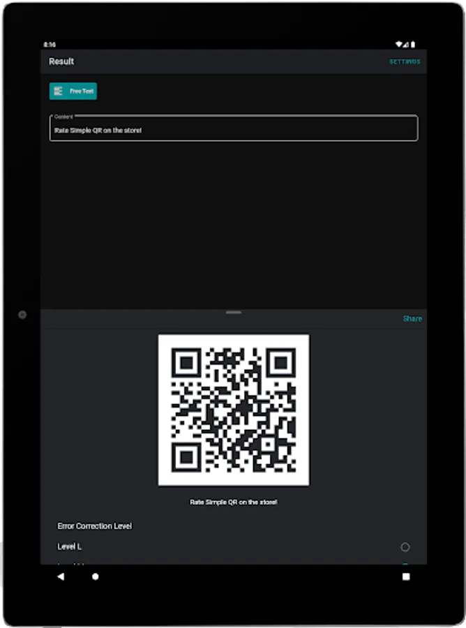 6. Customize the generated QR code, e.g. error correction level, color, margin and screen brightness.