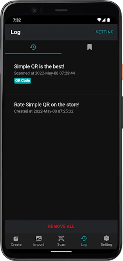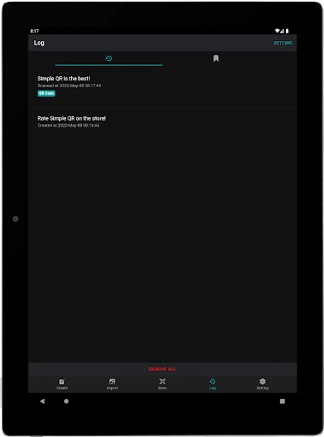 4. Automatically log results that you scan, create or view again. These logged records can be bookmarked for quick access, and also backupable.