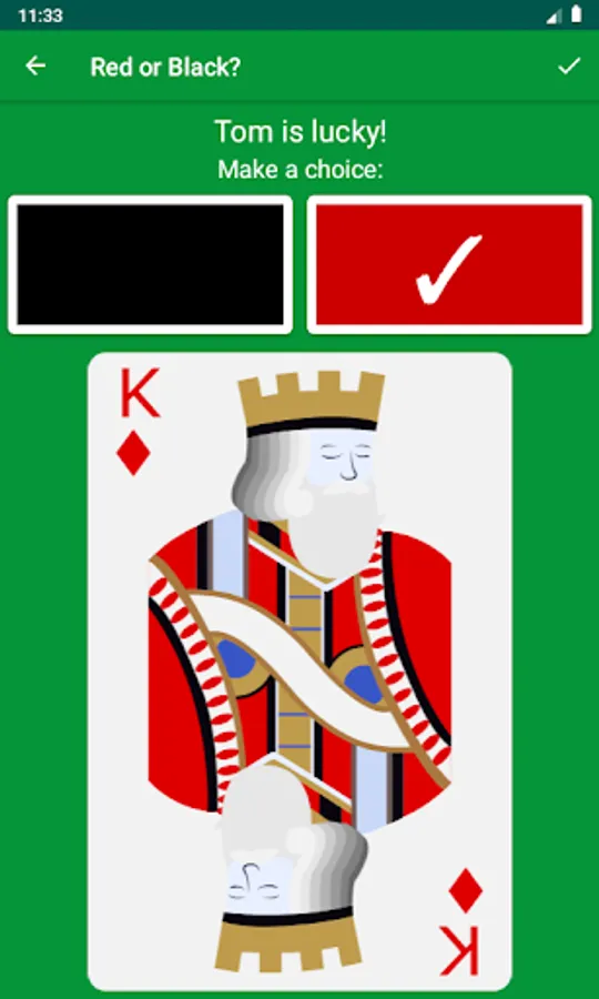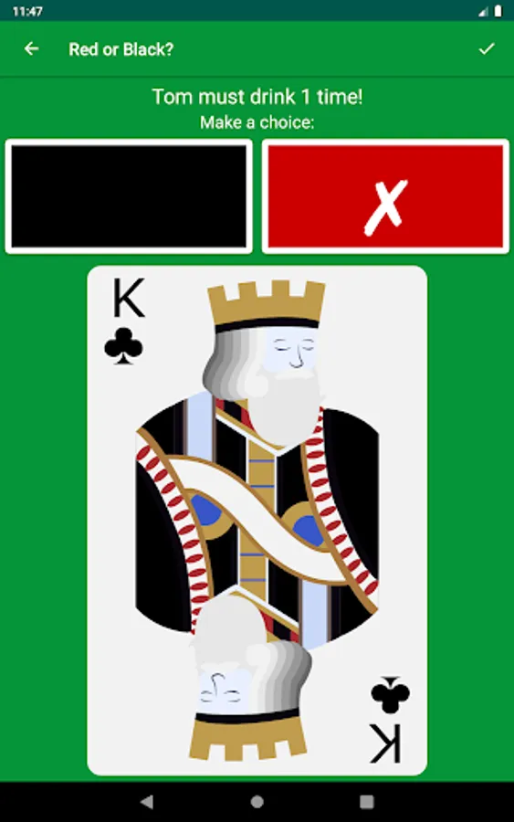 In this game, all players must guess whether the card has a red or black color. If the player gives a wrong answer, the player must drink.