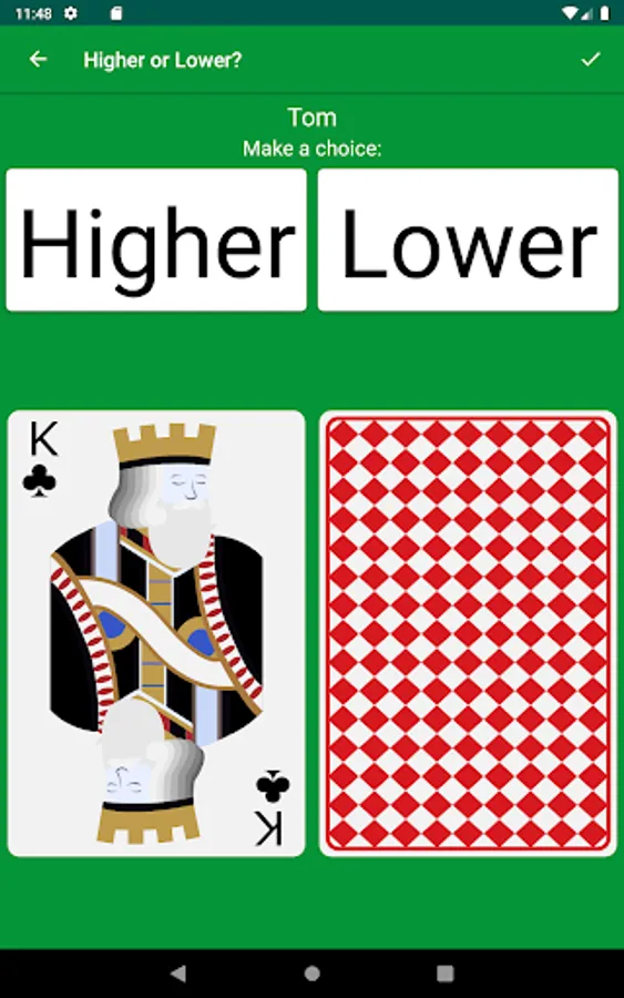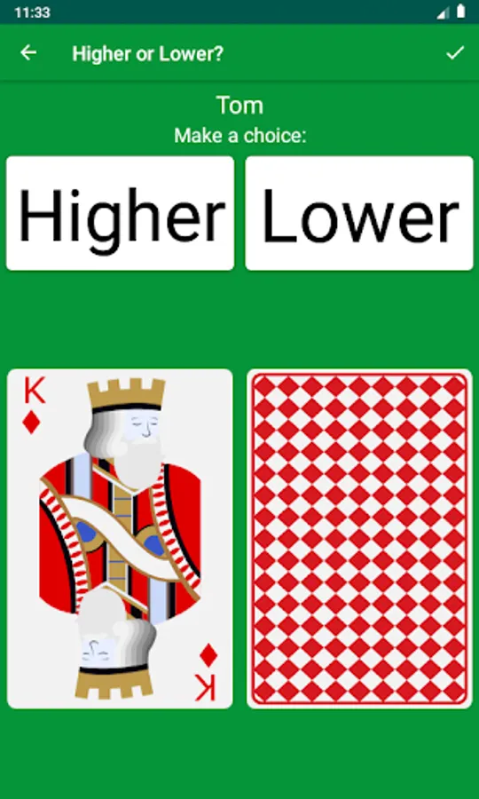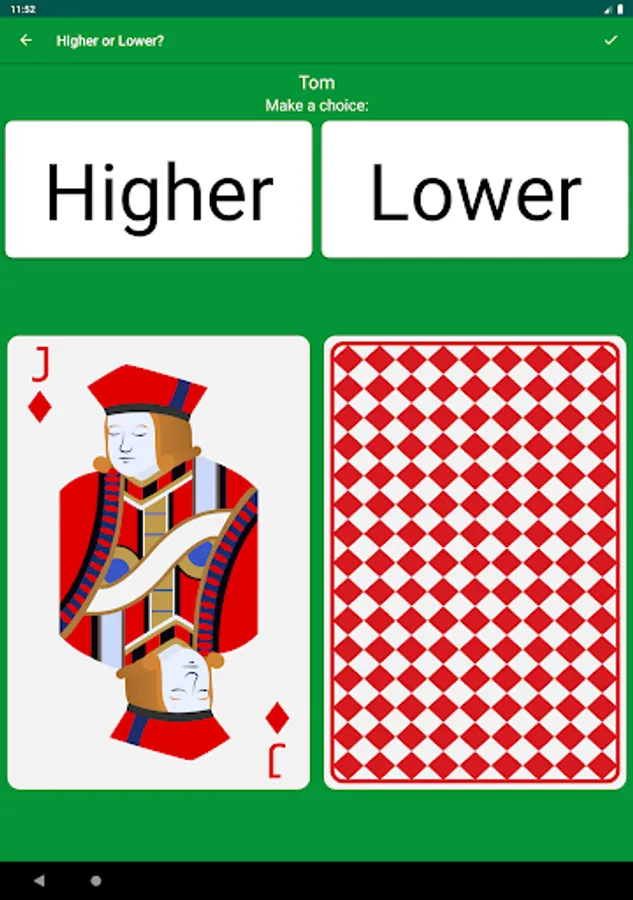In this game, all players must guess whether the card has a lower or higher value compared to its first card, with two being the lowest value and Ace being the highest value. If the player gives a wrong answer, the player must drink.
