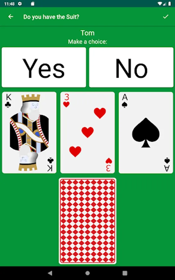 In this game, all players must guess whether the card is from the same suit (spades, hearts, diamonds, or clubs) as one of its first three cards. If the player gives a wrong answer, the player must drink.