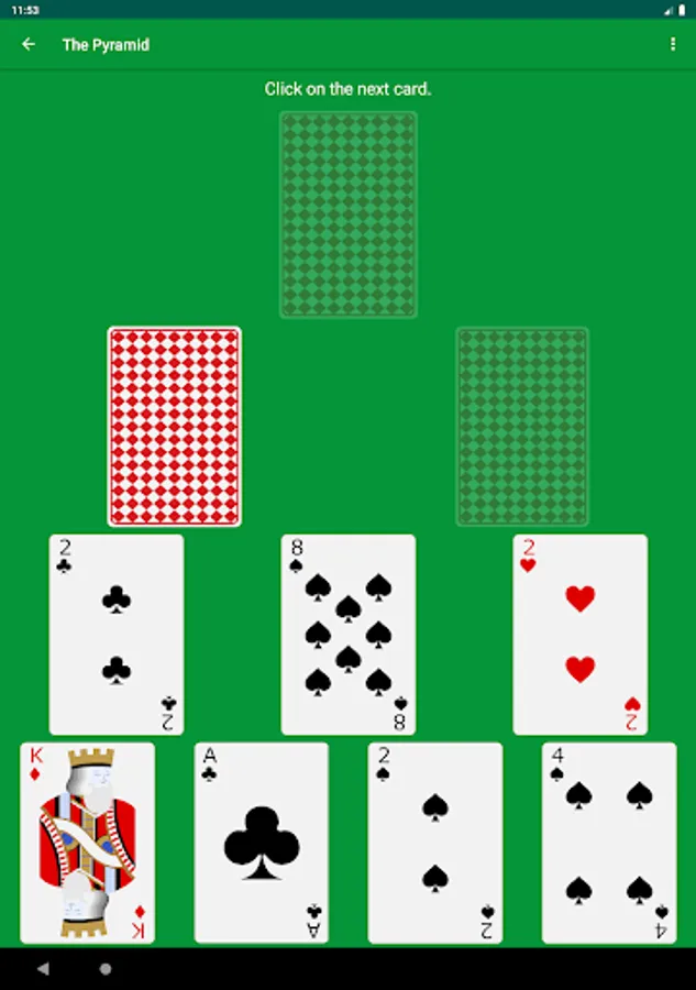 In this game, a pyramid of cards is being build. The pyramid exists of four layers, where the bottom layer contains four cards, the second layer three cards, etc. One by one, the cards of the pyramid are turned around, starting at the bottom layer of the pyramid. If a player contains a card with the same value as the turned around card on the pyramid, the player may distribute drinks to fellow players. The number of drinks that a player may distribute, depends on the layer of the pyramid. The higher the layer of the pyramid, the more drinks that may be distributed.
