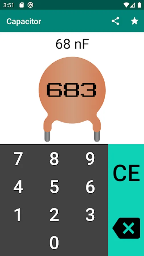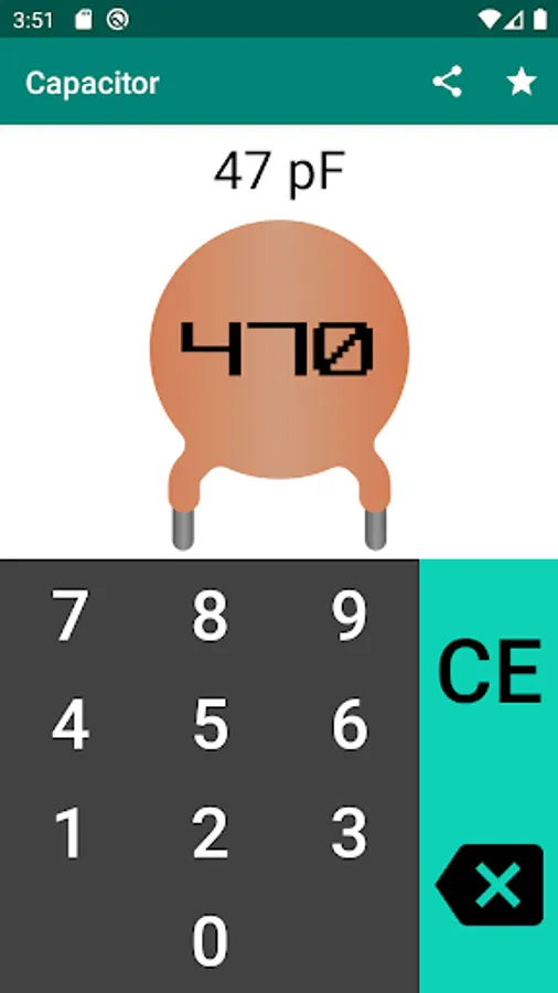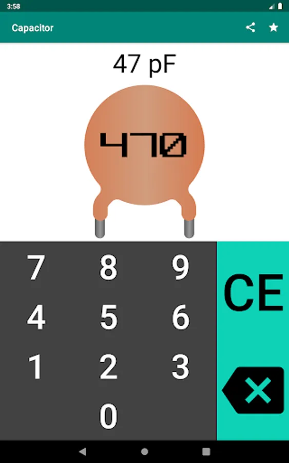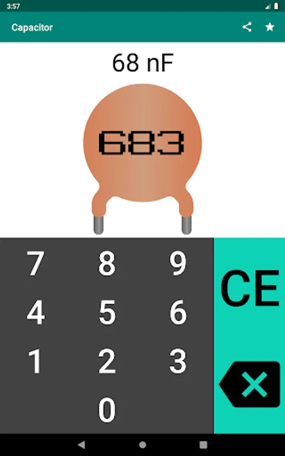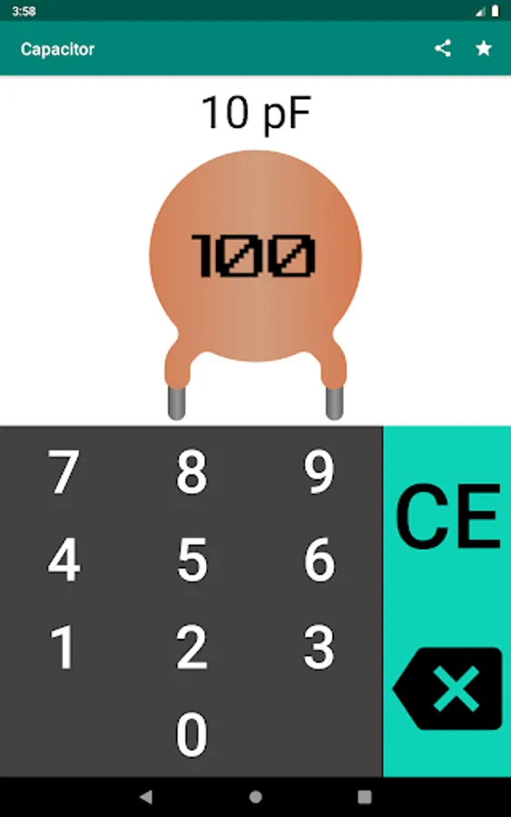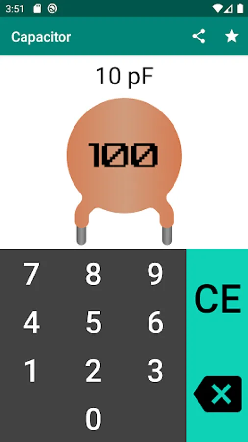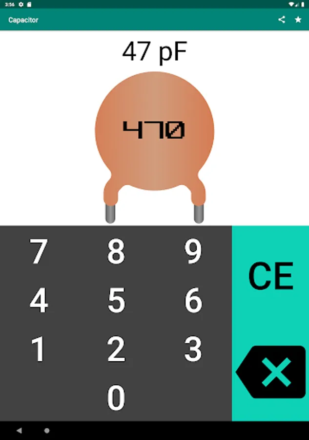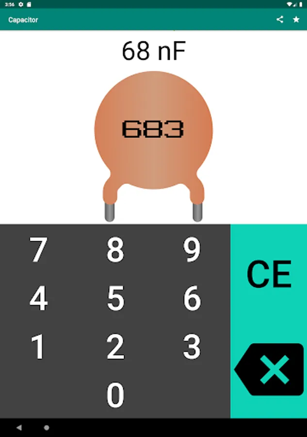 The application is an easy-to-use capacitor code calculator for calculating the capacitance of a capacitor.