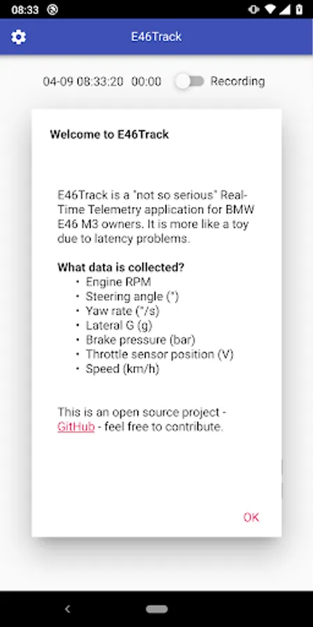 E46Track is a "not so serious" Real-Time Telemetry application for BMW E46 M3 owners. It is more like a toy due to latency problems.
