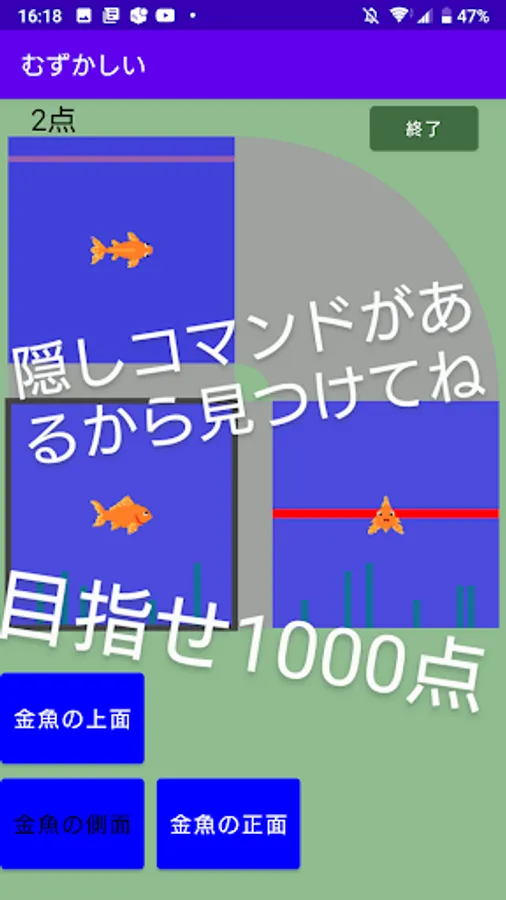 This game is a game in which players compete for how long they can survive by manipulating goldfish and dodging obstacles.
