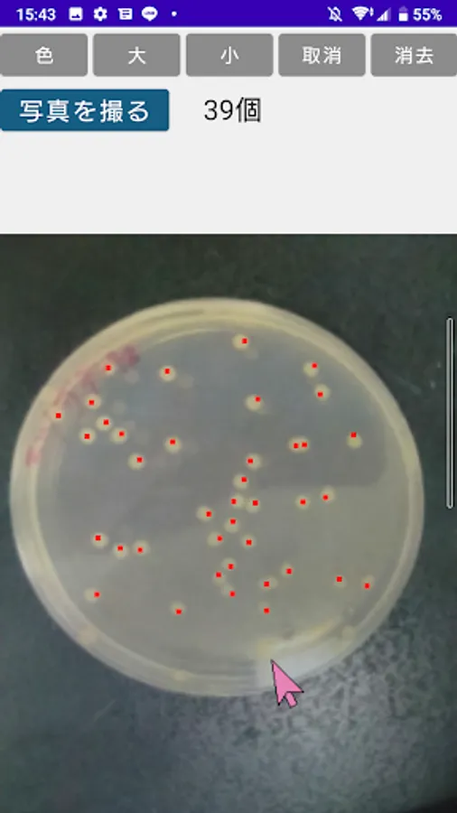 With "Tap to count", when you tap a colony on the screen with a stylus or your finger, a mark is added and counted.