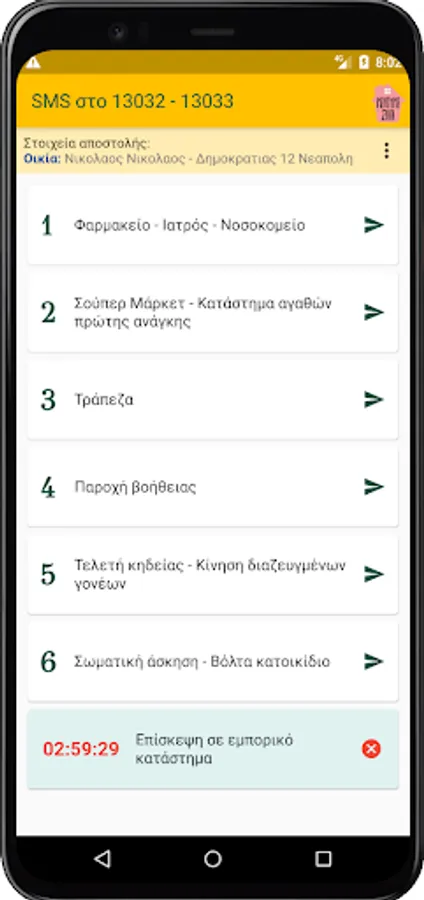 Indicates on your screen the remaining time of 3 hours for messages to 13032 and notification on your device at the end of the time.