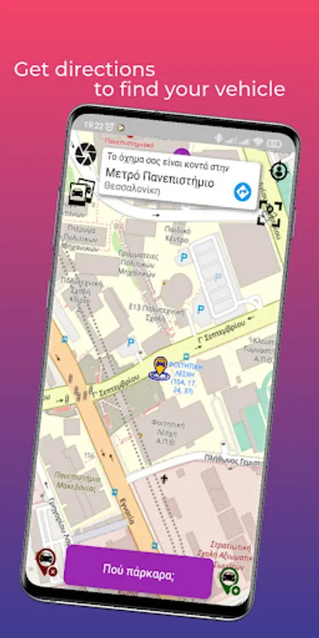 You can navigate to the parking location using the pre-installed map program of your mobile phone.