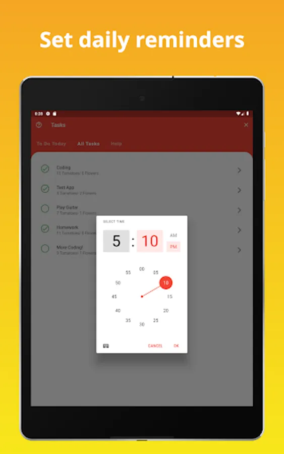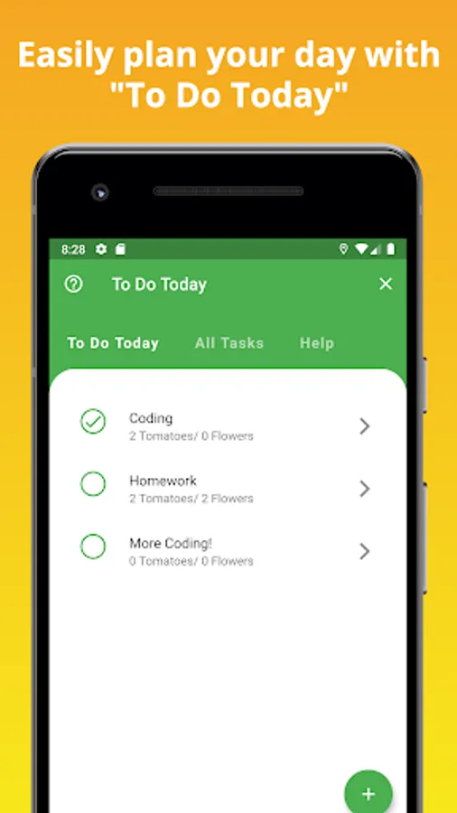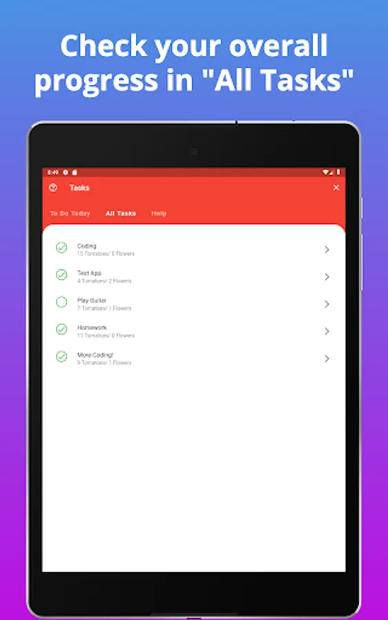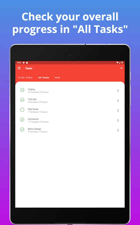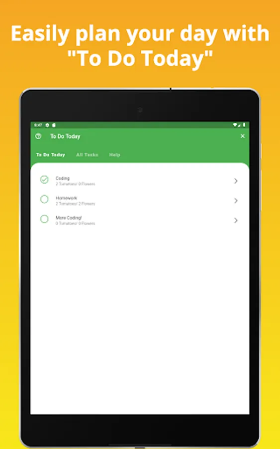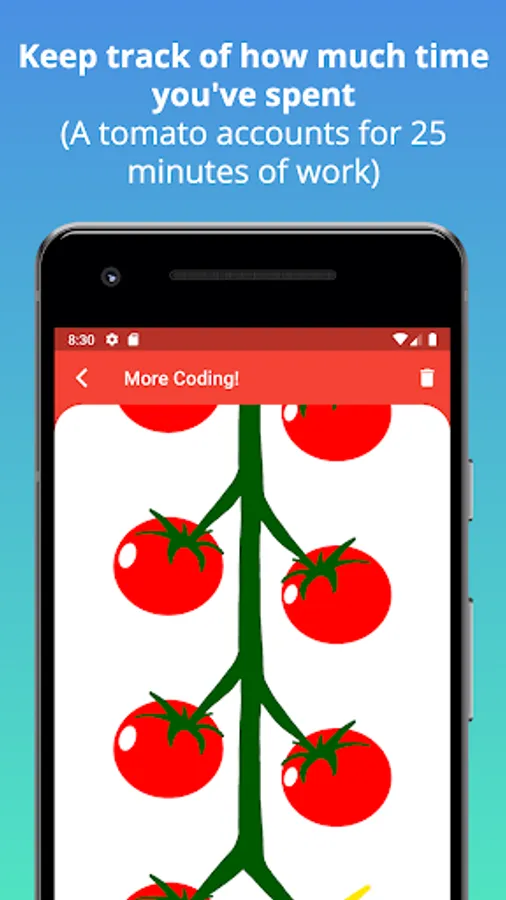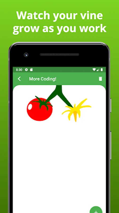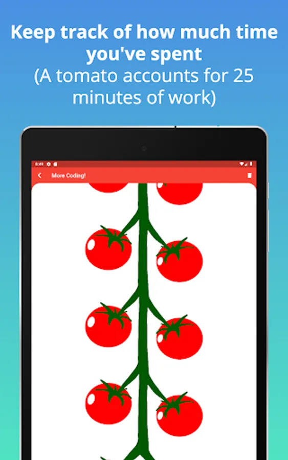 4) After the timer rings, you will see that your flower has grown into a tomato (this should help you see your progress and keep track of how much time you've spent on a task).