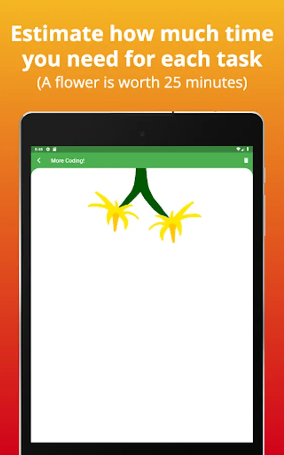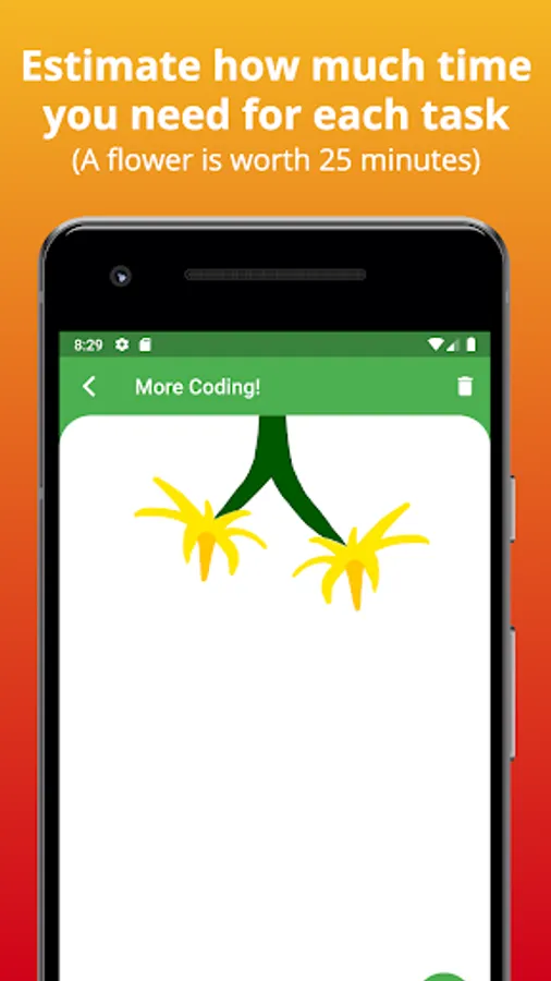 2) You then choose one task and decide how much time you want to spend on it by adding some flowers (Each flower is worth 25 minutes).