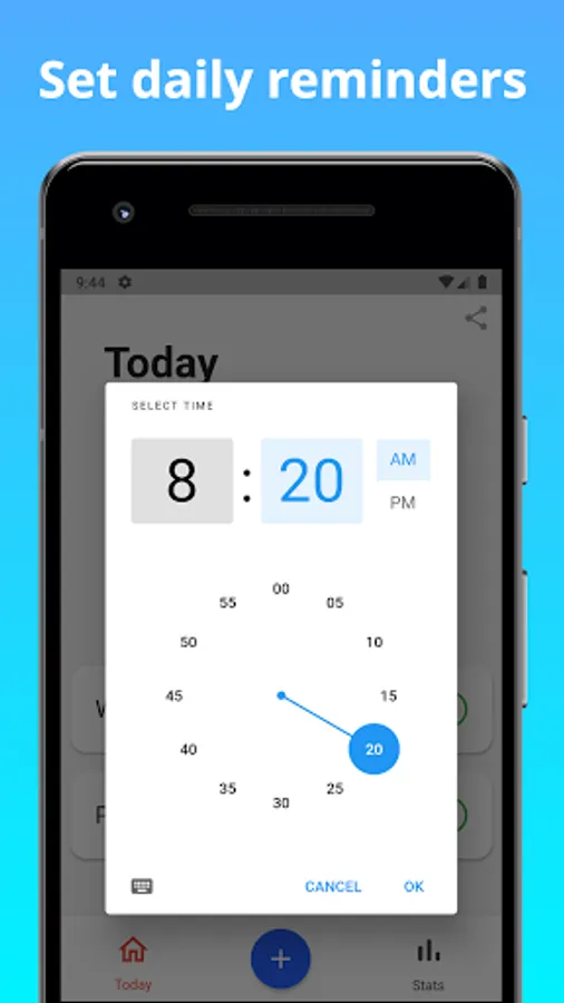 3) Swipe right on a habit to add a daily reminder, (swipe left on a habit if you need to delete it)