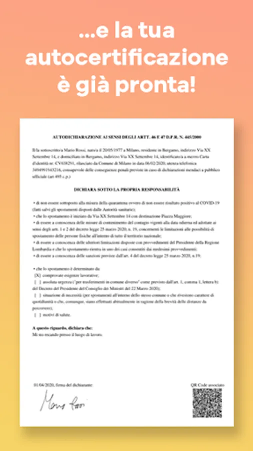In any case, the app can also be used to create self-certifications for those acquaintances who, for various reasons, are unable to complete them in person.