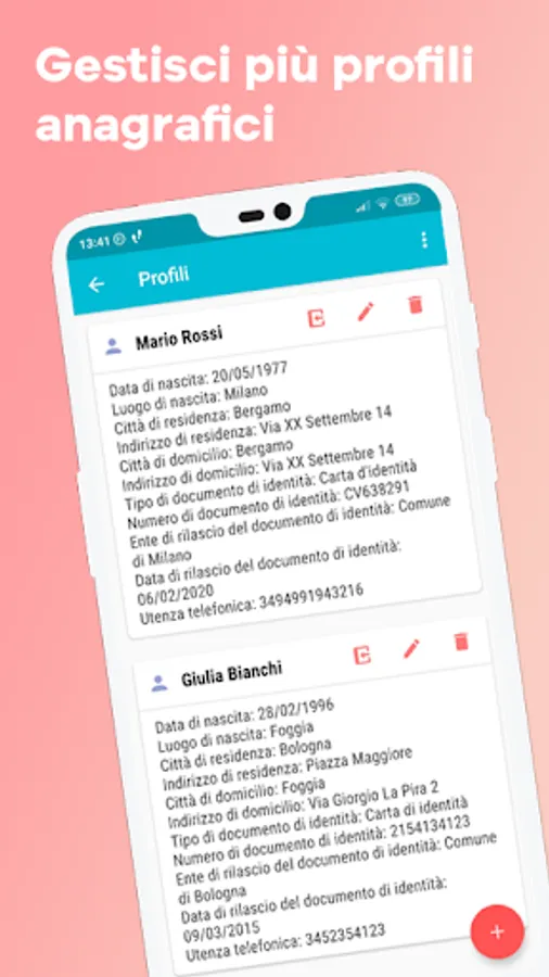 -possibility of storing more personal profiles, in order to fill in more quickly the self-certifications for more people. Profiles can also be imported by scanning the QR Code associated with each self-certification