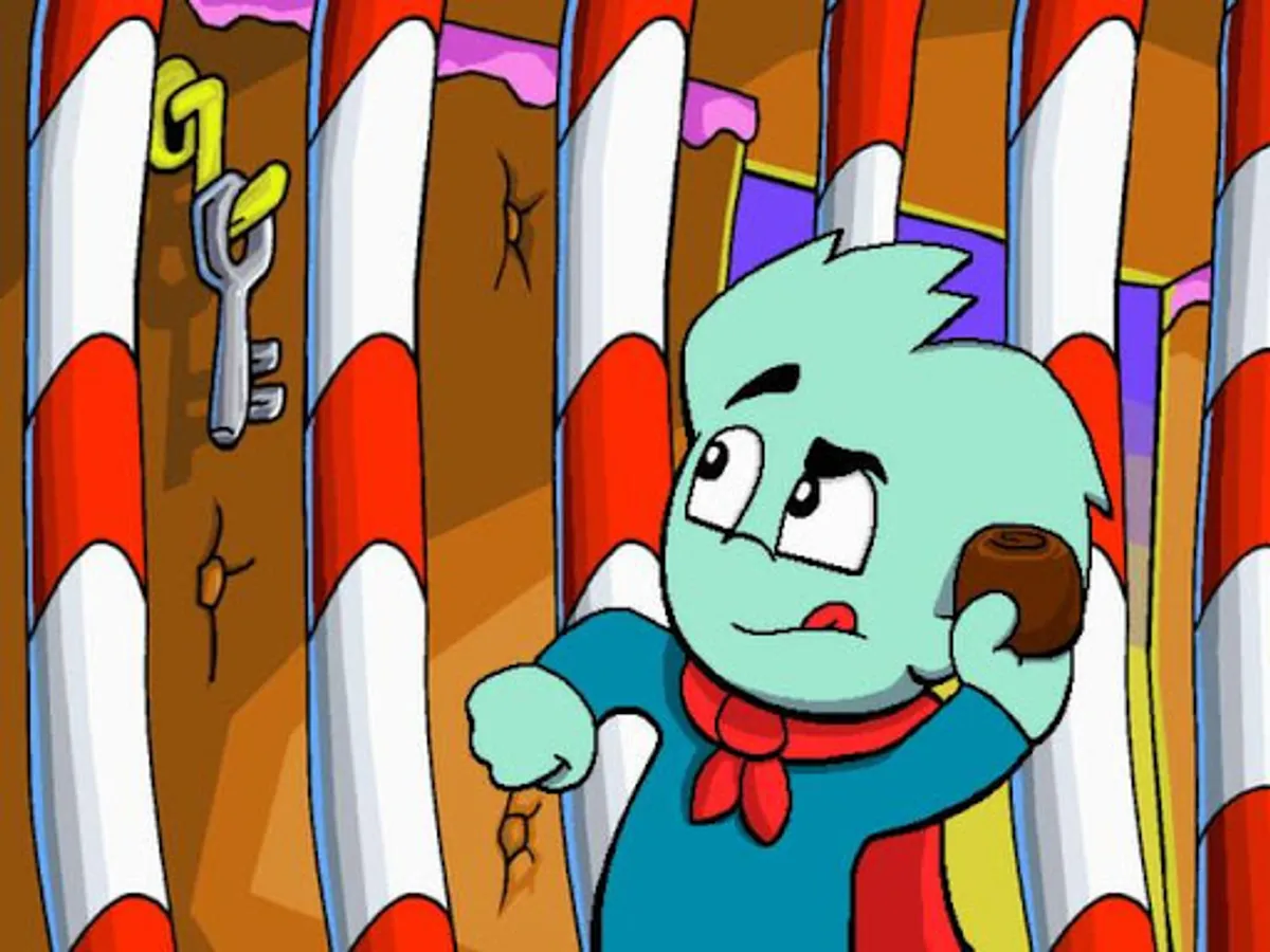 Pajama Sam chases down some snickering cookies, only to find himself in the midst of a food squabble! The fats and the sweets are taking over Mop Top Island and an emergency peace conference has been called, but four of the delegates are missing! Now, it's your turn to spring into action to help Pajama Sam find the missing delegates, put a stop to the sticky quarrels, bring peace to Mop Top Island, and still make it home in time for dinner.