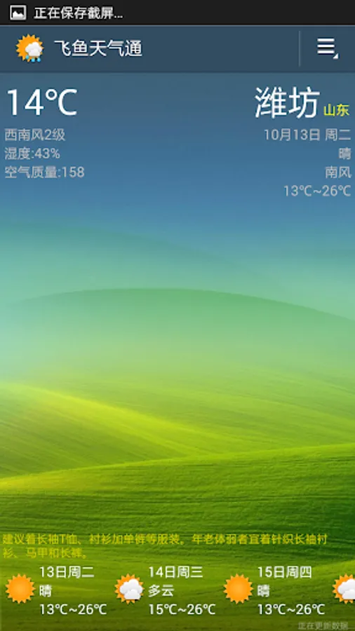 飞鱼天气通采用权威数据源授权信息,支持国内1000多个城市的天气预报和实时天气预警信息;更可查看300多个城市的空气质量指数。还支持天气/空气质量二合一的小部件(Widget),不用打开应用即可了解天气和空气状况。