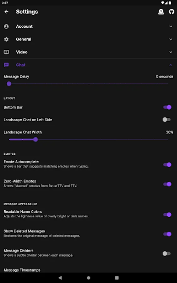 • Support for 7TV, BetterTTV (BTTV), and FrankerFaceZ (FFZ) emotes and badges