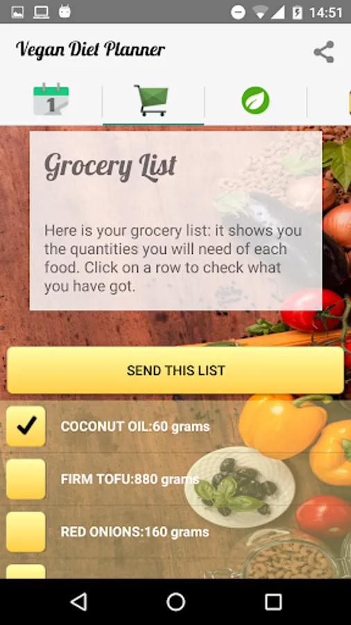 Vegan Diet Planner will create a personalized meal plan, with recipes, and a grocery list with all you will need to start eating vegan without ending up eating the same things over and over.