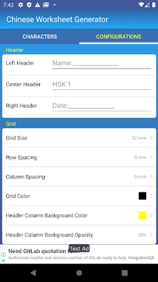 * Adjustable grid size, row spacing, column spacing, and traceable characters