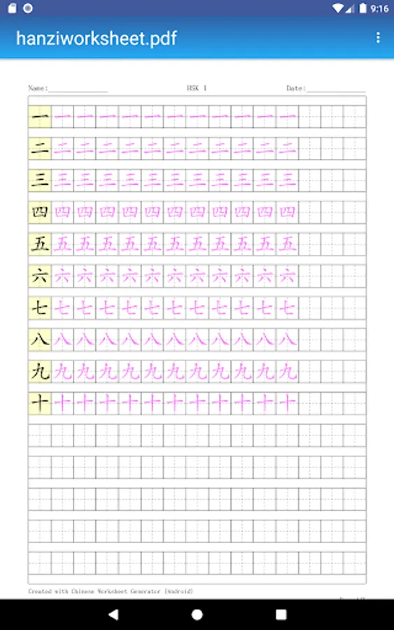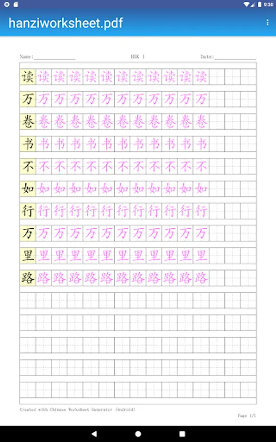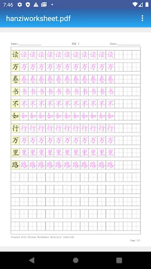 With this Chinese worksheet generator, you can generate Chinese character writing practice worksheet in A4 size PDF file.
