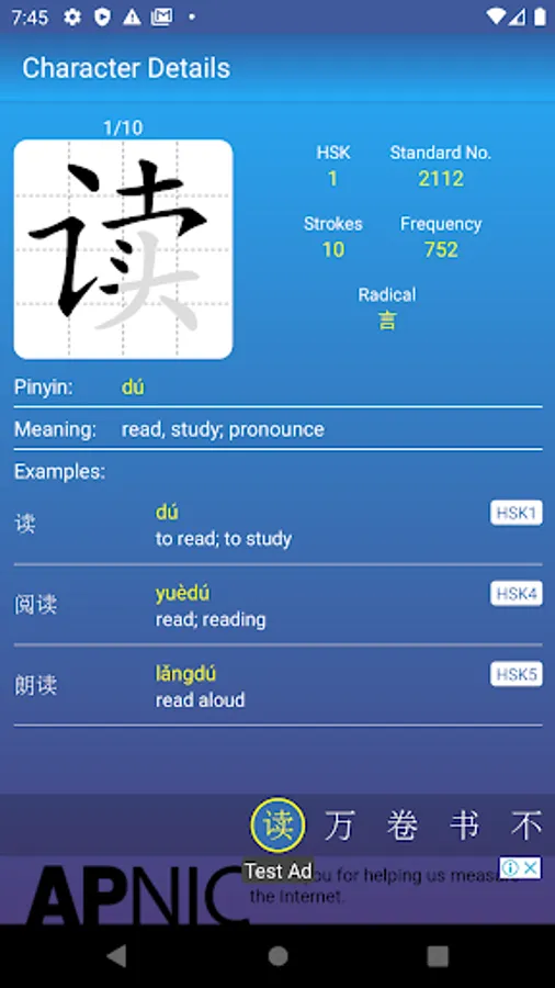 * Improve your Chinese character recognition by practice drawing the characters on screen