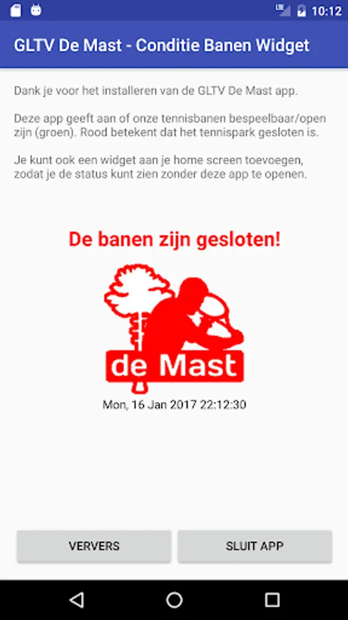 With this app you can see quickly and easily whether the tennnisbanen of GLTV Mast Geldrop be playable.