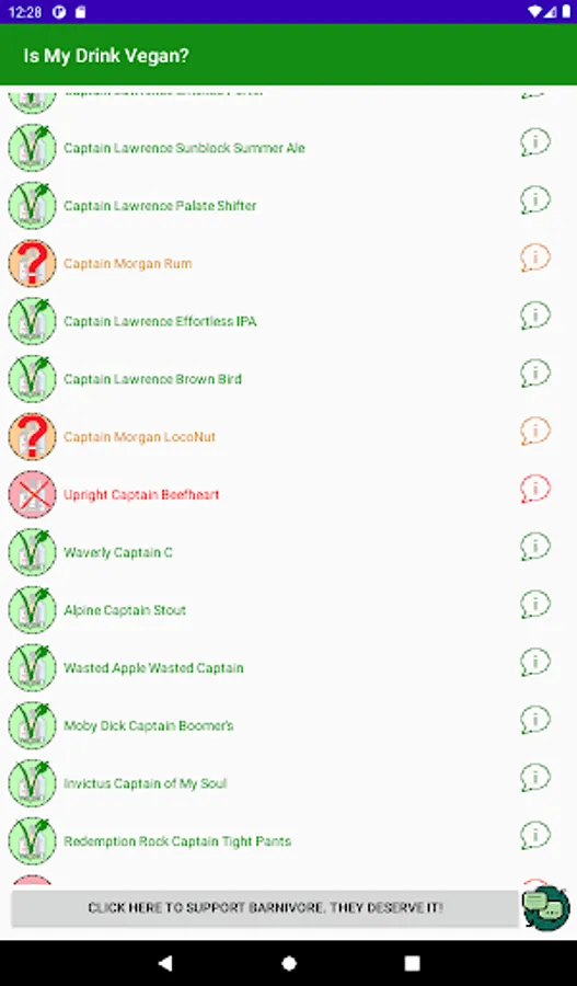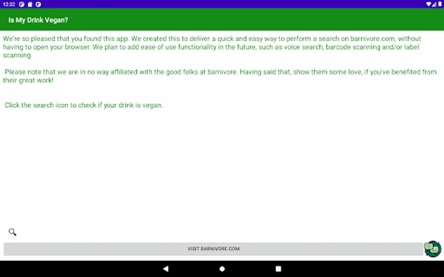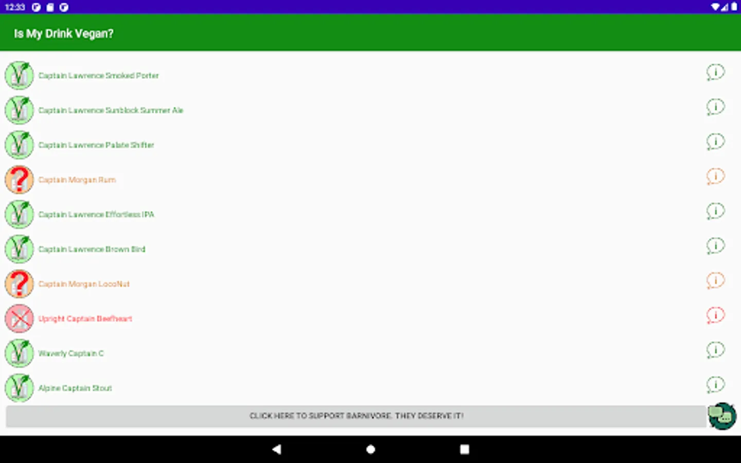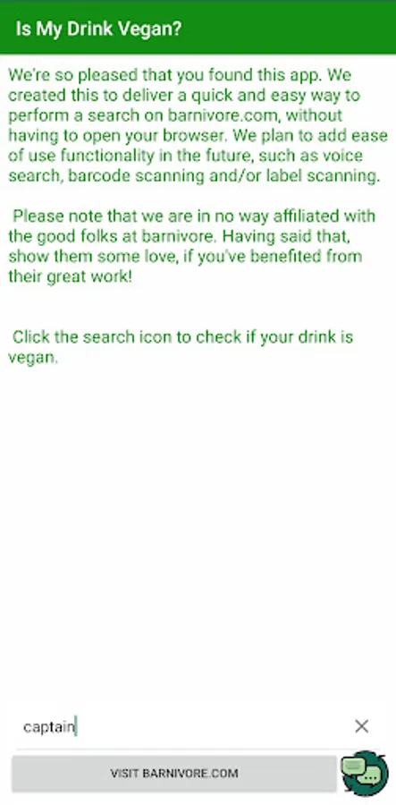 With "Is my drink vegan?", you will have the information on barnivore at your fingertips, fast and easily accessible whenever you need it.