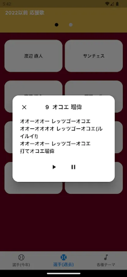 2. Excerpts from past famous players cheering songs - You can easily enjoy the memorable cheering songs of legendary players.