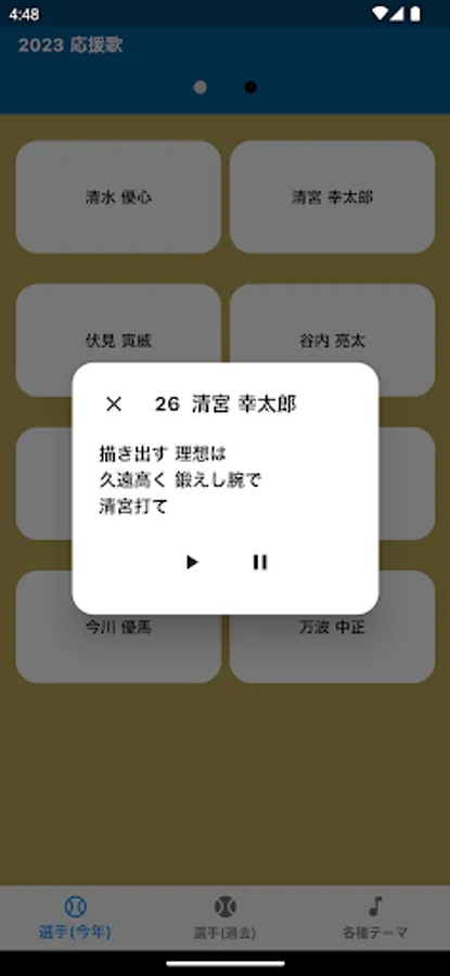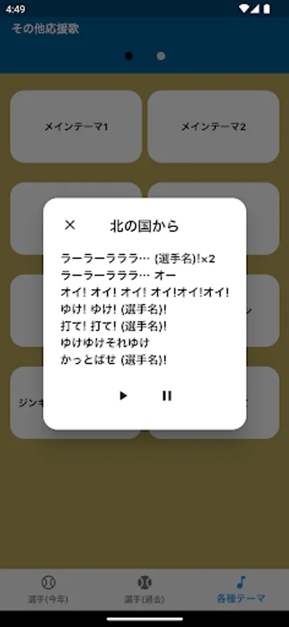 2. Excerpts from past famous players cheering songs - You can easily enjoy the memorable cheering songs of legendary players.