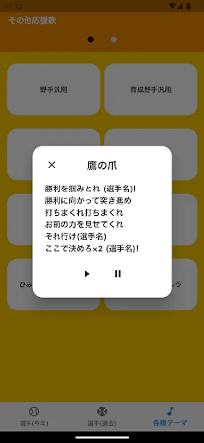 2. Excerpts from past famous players cheering songs - You can easily enjoy the memorable cheering songs of legendary players.